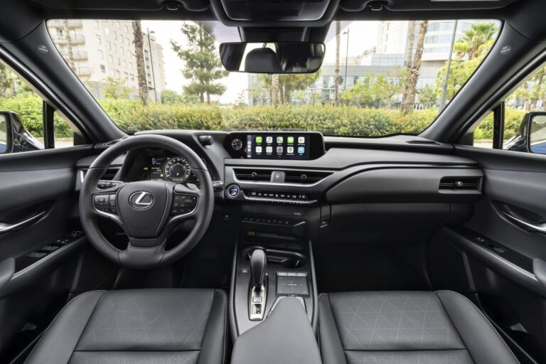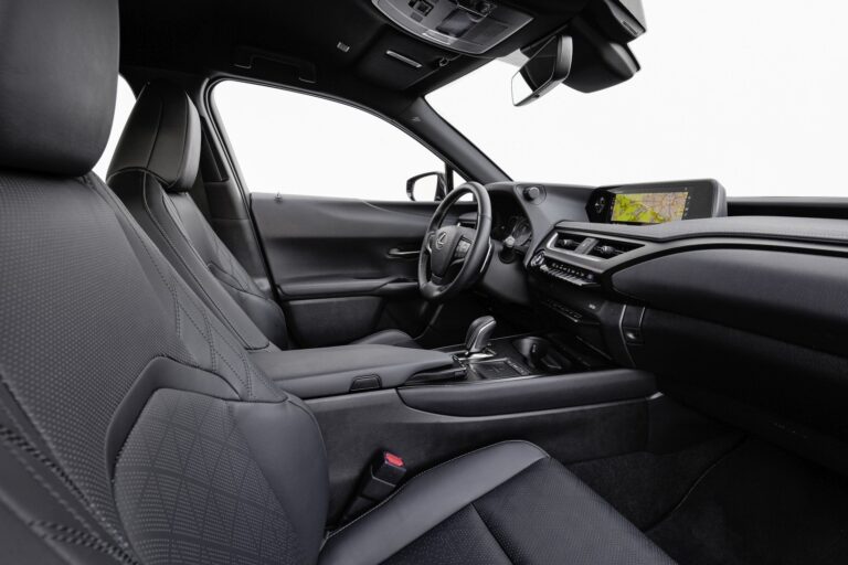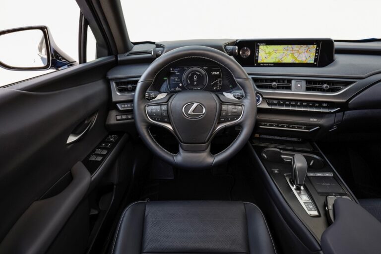 Jak w przypadku wszystkich modeli UX, wszystko, co ważne, znajduje się wokół kierowcy, a wszystkie sterowania są naturalne w dostępie (nawet inteligentny środkowy panel z podparciem na dłoń ma wbudowane sterowanie audio). Dla pierwszego całkowicie elektrycznego Lexusa, instrumenty do jazdy zostały specjalnie zaprojektowane z cyfrowym prędkościomierzem, co nadaje sportowy wygląd, wskaźnikiem zasięgu oraz wskaźnikiem czterostopniowego hamowania.