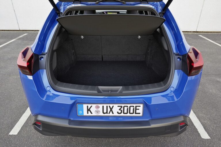 Z kompaktowym akumulatorem litowo-jonowym zainstalowanym poniżej tylnych siedzeń i pod podłogą kabiny, tylna przestrzeń prawie nie jest kompromitowana w porównaniu do innych modeli UX (16,4 mm mniej przestrzeni na głowę z tyłu), podczas gdy przestrzeń bagażowa właściwie zwiększyła się o 47 litrów (od pokrywy bagażnika) do 367 litrów (załadowane do pokrywy bagażnika) w porównaniu do hybrydy UX 250h. Wreszcie, bezdotykowa tylna klapa z elektronicznym otwieraniem ułatwia załadunek UX.