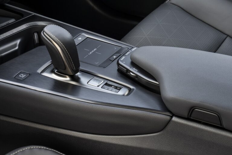 Kolejnym centralnym punktem interakcji dla kierowcy UX 300e jest starannie wykonany selektor jazdy. Zastępując konwencjonalną dźwignię zmiany biegów, idealnie pasuje do dłoni kierowcy i stosuje najnowszą technologię 'shift-by-wire’, aby stworzyć premium odczucie przy kontroli ruchu wstecz/neutralnym/jeździe. Dodatkowo, skok operacyjny został skrócony, aby umożliwić szybką zmianę biegów.