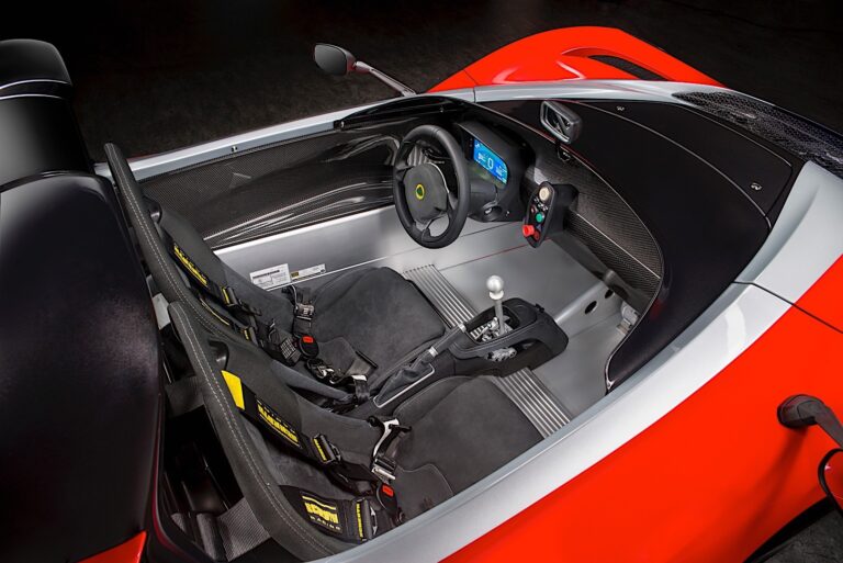 Standardowe wyposażenie samochodu nie pozostawia wątpliwości co do jego zamierzeń, z ogranicznikiem poślizgu typu Torsen, jednorazowymi regulowanymi amortyzatorami Öhlins DFV oraz regulowanymi przednimi i tylnymi stabilizatorami Eibach®. Dodatkowo, 6-pozycyjna zmienna kontrola trakcji, bezpośrednio powiązana z ECU, z pięcioma wstępnie ustawionymi poziomami trakcji (1%, 3%, 6%, 9%, 12% poślizgu i „wyłączone”) pozwala właścicielom dostosować swoje preferencje. Te funkcje dopełniają płynna, sześciobiegowa skrzynia manualna Lotusa, doceniana za projekt z otwartymi biegami – precyzyjnie zaprojektowana do szybkich i płynnych zmian biegów.