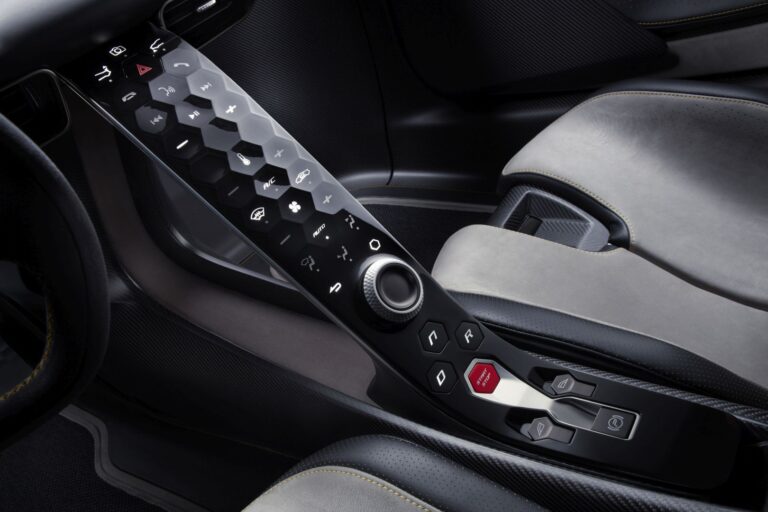 Dodatkowe kontrolki znajdują się na unoszącej się, „w stylu stoku narciarskiego” konsoli centralnej, która ma przyciski dotykowe z haptycznym feedbackiem. Każdy z nich jest zintegrowany w sześciokątnych zagłębieniach ułatwiających prowadzenie palców kierowcy. Gdy światło igra po powierzchni, tworzy to prawie organiczny efekt wizualny. Kierowca może również interaktywnie korzystać z technologii samochodu za pomocą koła kontrolnego. Projekt kompozytów przycisków jest powielany na dźwigniach kierunkowskazów oraz na powierzchni aluminiowych pedałów.