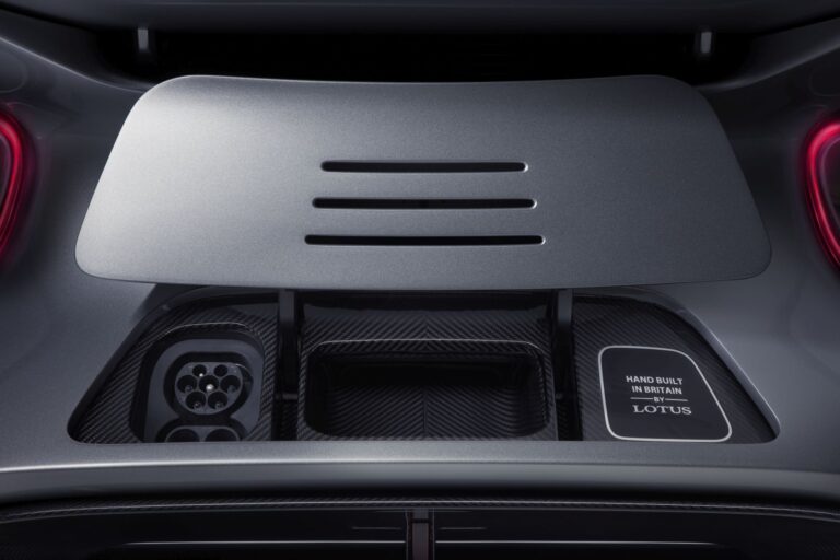 Chociaż płynne linie tworzą bardzo organiczny wygląd, Russell Carr, dyrektor projektowania w Lotus Cars, uważa, że ważne jest, aby samochód wizualnie przekazywał swoje osiągnięcia techniczne. „Gdy patrzysz przez tylną szybę, widzisz pokrywę akumulatora i zawieszenie wewnętrzne. Ten związek między człowiekiem a precyzyjnym inżynierią jest niezbędny dla Lotusa. Chcemy, aby ludzie mieli poczucie, że angażują się w moc i osiągi samochodu. Nazywamy to technologią z duszą.”