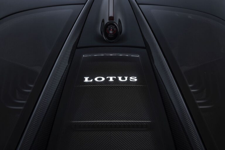 Niezwykła dbałość o szczegóły – jak można się spodziewać od Lotusa – jest sercem wnętrza. Na przykład widoczne powierzchnie karbonowe podkreślają poczucie lekkości, podczas gdy cienki metalowy pasek – wygrawerowany słowami 'Dla Kierowców’ – biegnie centralnie przez oparcia obu siedzeń.
