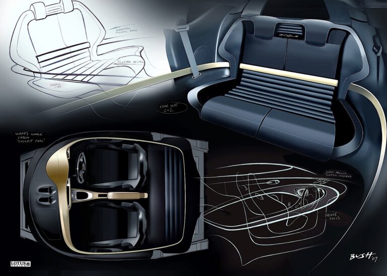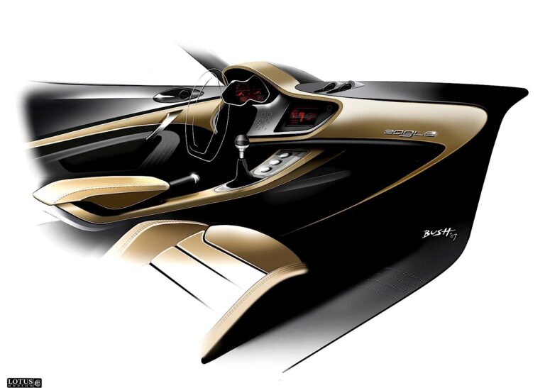 Steve Crijns dodał: „Ogólnie język projektu pokazuje wyraźne DNA pokrewieństwa z jego braćmi z Lotusa, jednocześnie ustanawiając swój własny wyróżniający się i nowoczesny temat.Fala na linii barków jest wspaniale powielana w dolnej części karoserii przez wycięty próg, tworząc muskularność podobną do torsu.”