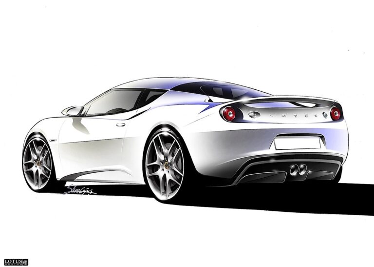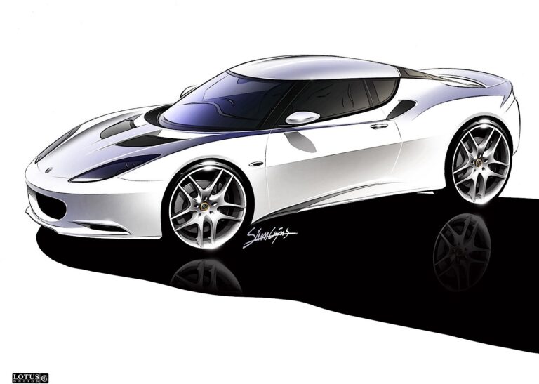 „Widok z przodu w trzech czwartych jest naprawdę potężny” – kontynuuje Russell Carr. „Twoje oko podąża bez wysiłku, od naszej „podpisowej” przedniej części, ku tyłowi, płynnych powierzchniami i szybkimi liniami, które tworzą poczucie prędkości nawet gdy samochód stoi w miejscu. Z tej perspektywy widać również, jak dramatycznie osłona przednia okala kroplowaty kształt kabiny, a lekko wcięty kształt planu doskonale podkreśla muskularność tylnego błotnika. To jest niewątpliwie język samochodów z silnikiem umieszczonym z tyłu, a Lotus Evora niewątpliwie jest Lotusem.”