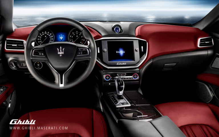 Wnętrze Ghibli odróżnia się od Quattroporte unikalnym projektem deski rozdzielczej, który doskonale pasuje do sportowego i młodzieńczego charakteru, nie tracąc jednak na luksusie, którego oczekuje się od Maserati. Ghibli oferuje także sportowy design połączony z przestronnością, której można oczekiwać od executive saloon Maserati.