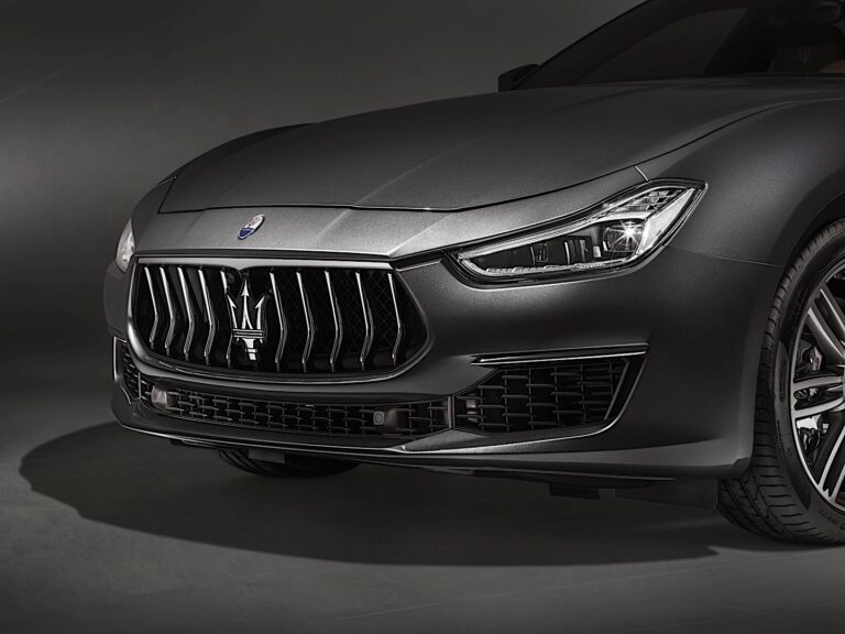 Nowy Maserati Ghibli GranLusso charakteryzuje się nowym przednim zderzakiem z dedykowanymi chromowanymi wstawkami oraz nową przednią kratką z chromowanymi listwami, zgodnie z najnowszymi trendami stylistycznymi modeli Maserati.