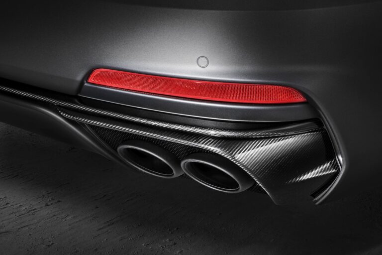 Tył pojazdu również wygląda szerzej i bardziej muskularnie, z ostrym poziomym elementem wykonanego z włókna węglowego oraz dolnym wyciągiem w kolorze nadwozia, które otaczają owalne końcówki wydechu.