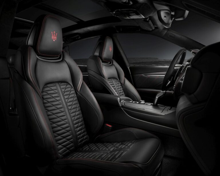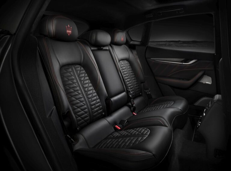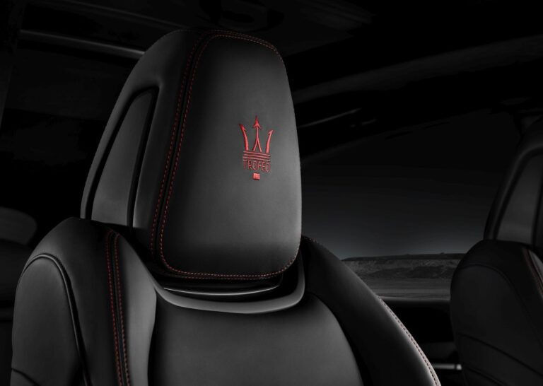 Projektanci wnętrz opracowali eleganckie sposoby na stworzenie wyjątkowej atmosfery we wnętrzu kabiny Maserati Levante Trofeo. Rzeźbione sportowe fotele wykonane są z wysokiej jakości naturalnej skóry „Pieno Fiore” dostępnej w kolorze czarnym, czerwonym i brązowym, wszystkie z kontrastowym przeszyciem oraz logo „Trofeo” haftowanym na zagłówkach. „Pieno Fiore” to jedyny w swoim rodzaju skórzany materiał stosowany w przemyśle motoryzacyjnym ze względu na swoją naturalną, miękką fakturę oraz unikalny charakter, który rozwija się z biegiem lat.