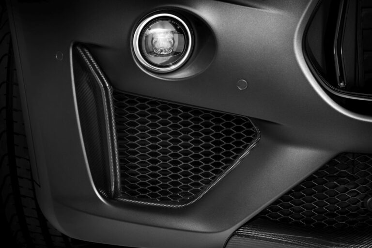 Boczne wloty powietrza w dolnej części zderzaka mają nowy, bardziej agresywny design, określony przez dwa aerodynamiczne skrzydła, które zapewniają dodatkową stabilność, wizualnie „popychając” ciężar przodu samochodu w kierunku masywnych przednich kół. Aby poprawić rozkład powietrza, Trofeo wyposażono w włókno węglowe w kształcie bocznych elementów oraz splitter wykonany z włókna węglowego.