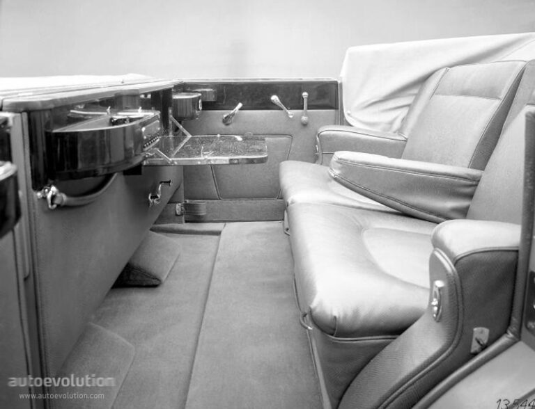 Wewnątrz luksusowa kabina oferowała miejsce dla czterech osób. Pasażerowie z tyłu mieli do dyspozycji podnóżki, składany stół, a nawet rozsuwane szklane panel między przednimi a tylnymi siedzeniami. Okna korbowe były kolejną luksusową opcją w czasach, gdy wiele samochodów wciąż oferowano bez szyb bocznych. Ale nie Maybach.