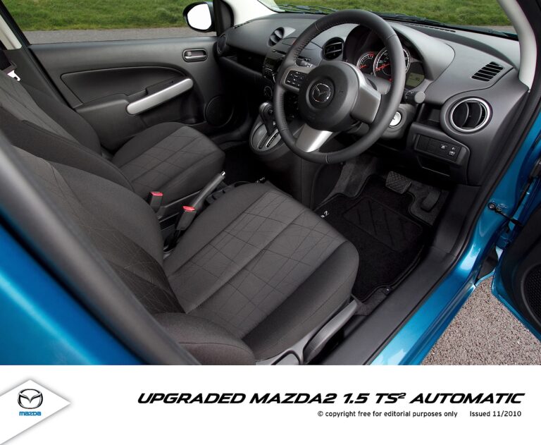 Linia barkowa Mazdy 2, która jest znacznie nachylona w dół w kierunku przodu samochodu, jest dopełniona niskimi punktami montażu lusterka wstecznego, co zapewnia kierowcy dobrą widoczność w dół w stronę przodu i boków. Dobra widoczność ułatwia skręcanie i poruszanie się po wąskich drogach, a także sprawdzanie wokół lusterek wstecznych, aby zobaczyć pieszych podczas skręcania na skrzyżowaniach. Co więcej, nowa Mazda 2 ma doskonałe możliwości regulacji siedzeń kierowcy, które w połączeniu z ergonomicznym designem, w którym pozycja dźwigni zmiany biegów jest wyższa, ułatwia zmianę biegów.