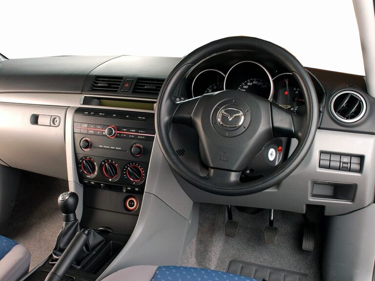 Wnętrze modelu 3/Axela wyróżniało się zakrzywioną deską rozdzielczą z trzema oddzielnymi wskaźnikami na konsoli, z prędkościomierzem pośrodku i obrotomierzem po lewej stronie. Po prawej znajdowały się wskaźniki temperatury płynu chłodzącego, poziomu paliwa oraz mały, monochromatyczny wyświetlacz LCD. Fotele przednie z odpowiednim bocznym wsparciem zapewniały dobrą stabilizację dla pasażerów, podczas gdy tylna ławka była odpowiednia dla dwóch dorosłych i dziecka pośrodku. Dzięki dzielonej tylnej kanapie, pojemność bagażnika mogła wzrosnąć z 413 litrów do 675 litrów.