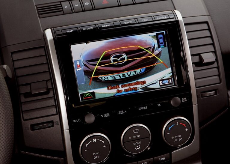 Mazda 5 po modernizacji ma również nowy system nawigacji DVD (w zależności od wersji i rynku) zaprojektowany, aby być łatwiejszym do odczytania i używania, z nowym 7-calowym dotykowym ekranem wielofunkcyjnym i komendą głosową, która jest teraz zintegrowana z panelem centralnym. Jak wcześniej, system nawigacji DVD obejmuje kamerę tylnego widoku, bardzo przydatny element podczas parkowania lub manewrowania w wąskich przestrzeniach. Standardowy odtwarzacz CD teraz odtwarza płyty CD w formacie MP3, dostępny jest wbudowany zmieniacz 6 CD, a także system telefoniczny Bluetooth® z kontrolkami na kierownicy i komendą głosową (w zależności od wersji).