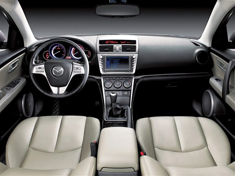 Wnętrze było przestronne i komfortowe dla czterech dorosłych pasażerów. Przednie fotele miały średnie oparcia, natomiast rozkładana kanapa z tyłu była wyposażona w trzy zagłówki. W zależności od poziomu wyposażenia, Mazda montowała system nagłośnienia Bose oraz nawigację satelitarną.