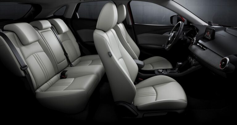 Idąc dalej, przednie siedzenia Mazdy CX-3 zostały całkowicie przeprojektowane, są szersze, z pianką poliuretanową o wysokiej gęstości, pochłaniającą wibracje, co tworzy twardą, wspierającą powierzchnię siedzenia. Mimo to są na tyle elastyczne, aby utrzymać kierowcę i pasażera w komfortowych warunkach podczas długich podróży. Po raz pierwszy, wyższe modele będą dostępne z pełnymi skórzanymi powierzchniami siedzeń.
