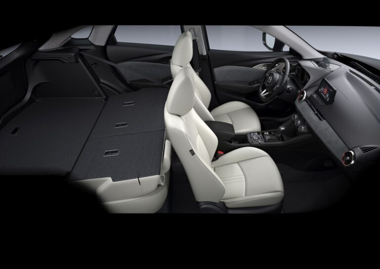 Dodatkowo, od deski rozdzielczej po wykończenie drzwi, materiał przypominający zamsz zapewnia wyrafinowaną atmosferę dla pasażerów CX-3. Kolorystyka została uproszczona, z szarym jako kolorem bazowym, uzupełnionym przez białe lub czarne skórzane fotele w wyższych modelach. Nowe czerwone akcenty wokół wentylacji HVAC CX-3 mają bogaty blask, podobny do Soul Red Crystal. Wysoki połysk plisowanego obszycia na skórzanych siedzeniach CX-3 uzupełnia jego radykalny, a zarazem wyszukany styl.