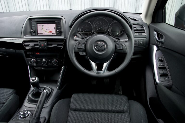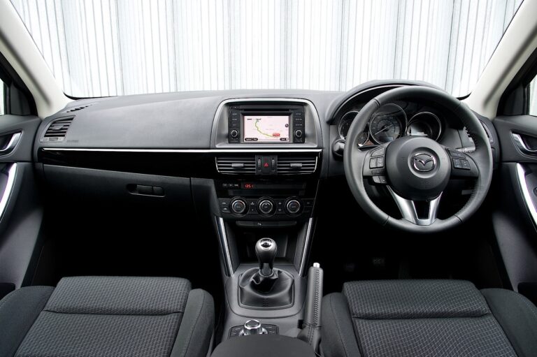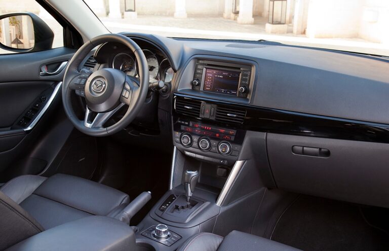 W środku Mazda stworzyła kabinę skierowaną ku kierowcy z solidnym, ale dojrzałym stylem, który odzwierciedla siłę i solidność zewnętrzną CX-5. I, co nie jest zaskoczeniem dla Mazdy, wygląd i odczucie wnętrza podkreślają sportowy charakter samochodu.