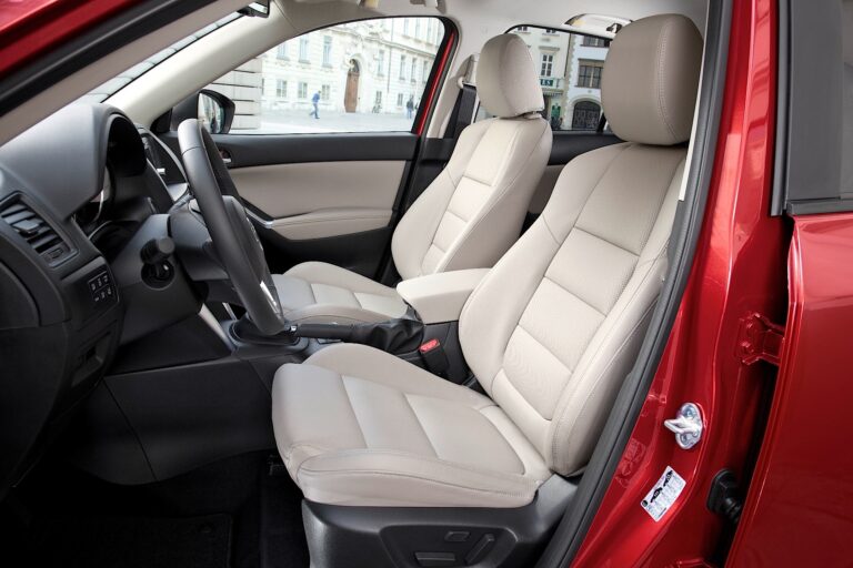 Kierowca i pasażer będą również komfortowo i bezpiecznie siedzieć w nowo opracowanych, wysokowydajnych przednich siedzeniach Mazdy. Zostały zaprojektowane z lekką konstrukcją, co zwiększa sztywność oraz komfort siedziska i izoluje wibracje dla lepszej jakości jazdy. Zapewniając dobre wsparcie lędźwiowe i wyższe wsparcie ciała, zmniejszają zmęczenie, hamując ruch dolnej części ciała podczas pokonywania zakrętów. Fotel kierowcy dostępny jest nawet z łatwo dostępnymi, 8-kierunkowymi zdalnie sterowanymi ustawieniami (standard w najwyższym pakiecie wyposażenia), w tym elektrycznym wsparciem lędźwiowym.