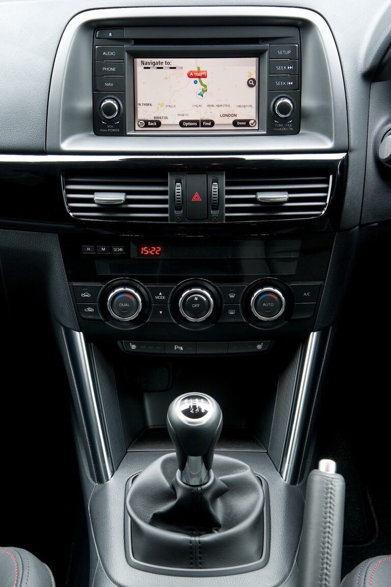 Łatwiejszy w użyciu niż kiedykolwiek, nowej generacji HMI (interfejs człowiek-maszyna) Mazdy CX-5 ma 5,8-calowy ekran dotykowy umieszczony na górze deski rozdzielczej, minimalizując potrzebę, aby kierowcy odrywali wzrok od drogi. Uproszczone sterowanie na kole kierownicy umożliwia prostsze niż kiedykolwiek działanie systemu infotainment, który może być również dostępny za pomocą pilota HMI na konsoli centralnej między przednimi siedzeniami lub bezpośrednio przez ekran dotykowy. System infotainment obsługuje najnowszą technologię, w tym złącze USB oraz bezprzewodowe połączenie Bluetooth®, jak również odtwarzanie dźwięku przez iPoda® bezprzewodowo.