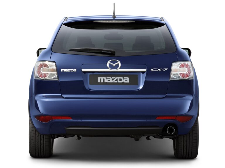 Nowe wizualne ulepszenia kontynuują na bokach i z tyłu faceliftingowanej Mazdy CX-7. Chromowane detale znajdują się teraz na dole drzwi, wokół bocznych okien oraz tuż poniżej dużego logo Mazdy z tyłu, a dostępny jest także nowy i większy spojler dachowy (wszystko w zależności od wersji).