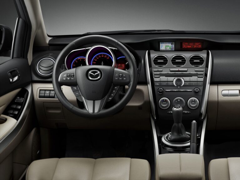 Przestronność i praktyczność SUV-a, połączona z ergonomicznym kokpitem, sportowymi akcentami i wysokim rzemiosłem, stanowiła atrakcyjną kombinację oryginalnej Mazdy CX-7. Facelifting wzbogaca to o aktualizacje, które mają na celu dalsze podniesienie jakości wzrokowej i odczucia wnętrza. Jest nowy materiał wykończeniowy i deska rozdzielcza z drobnymi przetłoczeniami oraz zaokrąglonymi krawędziami, co nadaje tym powierzchniom wyższą jakość i sprawia, że są bardziej odporne na zabrudzenia. Kierownica została zaprojektowana na nowo i zawiera więcej przycisków sterujących. Zestaw wskaźników przed kierowcą zyskał nowe tarcze oraz białe wskaźniki dla trójwymiarowego wyglądu oraz nowe oświetlenie w niebieskiej obwódce.