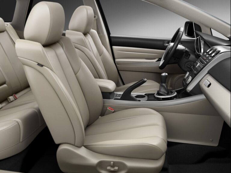 Wewnątrz znajdują się przednie fotele zaprojektowane w celu ochrony szyi i klatki piersiowej w przypadku uderzenia z tyłu. Posiadają optymalnie ustawioną pozycję zagłówka, wzmocniony obszar mocowania i wzmocnioną strukturę oparcia fotela, która utrzymuje głowę i klatkę piersiową przednich pasażerów w kontakcie z zagłówkiem, co pomaga uniknąć urazów kręgosłupa. Standardowe dla wszystkich wersji faceliftingowanej Mazdy CX-7 są przednie, boczne i kurtynowe poduszki powietrzne, składany pedał hamulca, który pomaga zmniejszyć ryzyko urazu nóg kierowcy, mocowania fotelików bezpieczeństwa ISOFIX oraz górne mocowania w tylnych siedzeniach, a także wykończenie słupków z żeberkami pochłaniającymi energię.