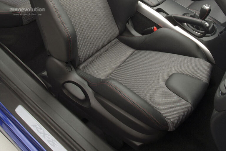 Elementy rotacyjne zagościły w wnętrzu Mazdy RX-8 w twórczy sposób, pojawiając się w siedzeniach. Stylowa kabina wzbudza również poczucie luksusu i wysokiej jakości. Zespół projektowy Mazdy przeanalizował każdy aspekt i element wnętrza, tworząc elegancką atmosferę skoncentrowaną na kierowcy. Dzięki zaawansowanym badaniom ergonometrycznym inżynierowie Mazdy ustalili, że niewłaściwa postawa siedząca jest główną przyczyną zmęczenia kierowcy, i wprowadzili optymalne wsparcie w przednich siedzeniach, aby pomóc złagodzić dyskomfort. Ponadto kolor wskaźników w Mazdzie RX-8 został opracowany w celu zredukowania zmęczenia oczu i napięcia.