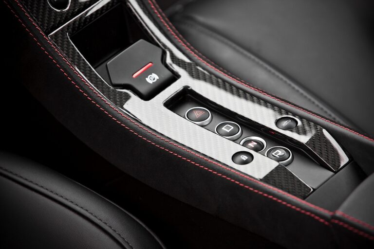 Wnętrze samochodu prezentowało te same drogie materiały, co nadwozie, z włóknem węglowym, skórą i aluminium. Za siedzeniami producent zainstalował półkę na rzeczy, mimo że silnik pod nią się rozgrzewał. Zegar prędkościomierza znajdował się w centralnej części deski rozdzielczej, a po bokach były dwa wyświetlacze LCD. Na środkowej konsoli zamontowano jednostkę informacyjną z ekranem dotykowym.