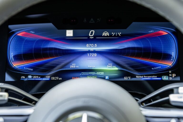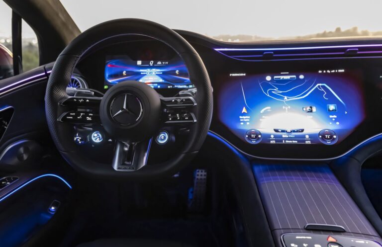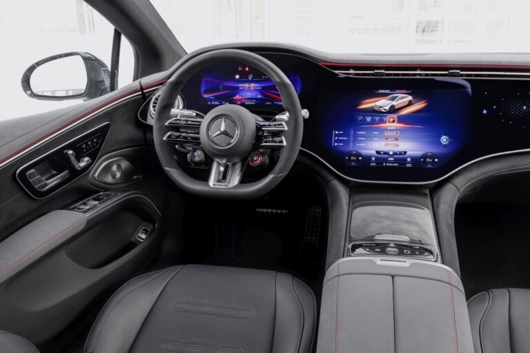 W porównaniu do modeli siostrzanych od Mercedes-EQ, MBUX w EQS53 4MATIC+ oferuje szereg dodatkowych funkcji, które podkreślają cechy wysokowydajne sportowego modelu. Dotyczy to szczególnie wyrazistych wyświetlaczy na panelu instrumentów, a także w multimedialnym wyświetlaczu i wyświetlaczu przeziernym. Szybki dostęp do trybów jazdy AMG DYNAMIC SELECT zapewnia odpowiedni przycisk bezpośredniego dostępu w konsoli środkowej.