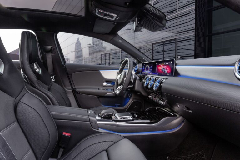 Wnętrze A35 4MATIC Sedan wyróżnia nowy system multimedialny MBUX, który łączy intuicyjny układ obsługi z sportowym designem. MBUX zacieśnia więź między pojazdem, kierowcą a pasażerami. Emocjonujące prezentacje podkreślają przejrzysty układ sterowania i charakteryzują się doskonałą grafiką 3D o maksymalnej rozdzielczości. Wizualnie oba wyświetlacze pod wspólną szklaną pokrywą tworzą Widescreen Cockpit, a jako centralny element podkreślają horyzontalną orientację wnętrza.