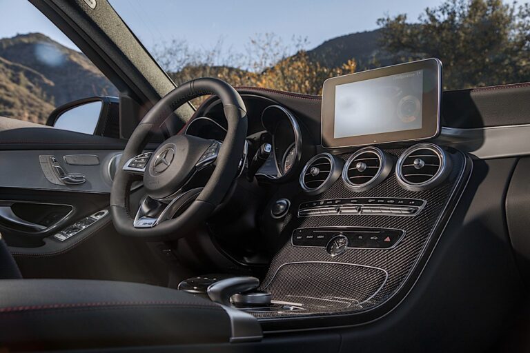 Wnętrze to już popis wyobraźni AMG, które stworzyło sportowo zorientowaną kabinę z fotelami sportowymi z przodu. Zainstalowano wykończenia z włókna węglowego, a sportowe fotele podkreślały dynamiczny wygląd. Aluminium w dźwigniach zmiany biegów za płaskim kołem kierownicy dopełniało elementy inspirowane wyścigami.