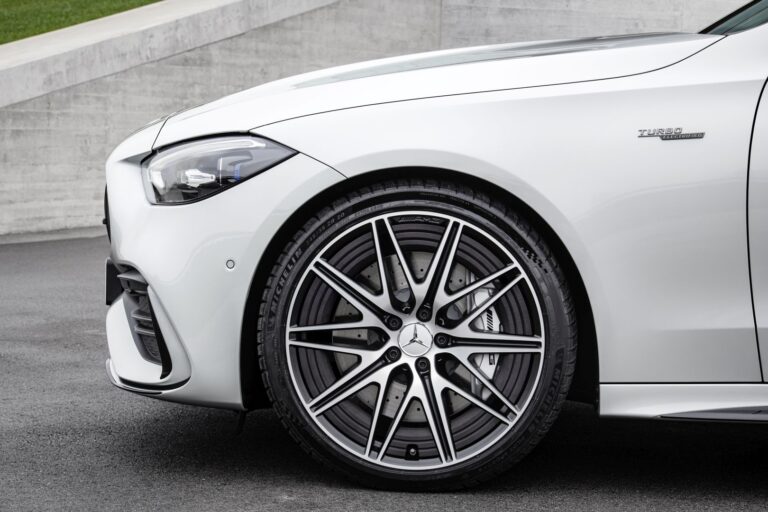 Technologia prosto z Formuły 1 w najnowszej generacji Mercedes-AMG C43 4MATIC wyznacza nowe standardy w zakresie innowacyjnych rozwiązań napędowych, zarówno w wersji sedan, jak i kombi. Po premierze w modelu Mercedes-AMG SL43, silnik AMG o pojemności 2,0 litra z czterema cylindrami, będący pierwszym na świecie seryjnie produkowanym jednostką wyposażoną w elektryczny turbosprężarkę, jest teraz również stosowany w klasie C. Nowa forma doładowania zapewnia szczególnie spontaniczną reakcję w całym zakresie obrotów, co przekłada się na jeszcze bardziej dynamiczne doświadczenie z jazdy. Turbosprężarka jest napędzana przez system elektryczny 48 V, który zasila także rozrusznik-generator (RSG) z napędem pasowym. W Mercedes-AMG C43 4MATIC jednostka ta wytwarza 300 kW (408 KM) i w niektórych sytuacjach jazdy potrafi skorzystać z krótkiego dodatkowego doładowania wynoszącego 10 kW (14 KM) z RSG. Standardowy układ kierowniczy na tylnej osi, stały napęd na wszystkie koła AMG Performance 4MATIC z momentem obrotowym skierowanym głównie na tylną oś, skrzynia biegów AMG SPEEDSHIFT MCT 9G z mokrym sprzęgłem startowym oraz zawieszenie AMG RIDE CONTROL z systemem adaptacyjnego tłumienia także przyczyniają się do dynamicznych wrażeń z jazdy. W zgodzie z tym, cechy charakterystyczne dla marki w zakresie wyposażenia i wykończenia, jak również w projekcie zewnętrznym i wewnętrznym podkreślają sportowy charakter nowego Mercedes-AMG C43 4MATIC.