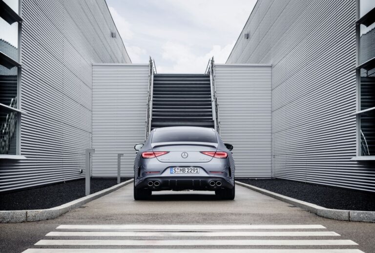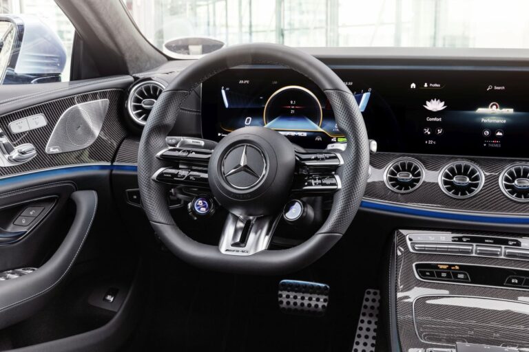 Mercedes-AMG zaktualizowało sportowy model CLS53 4MATIC+, wprowadzając liczne wizualne akcenty i atrakcyjne pakiety wyposażeniowe. W standardzie nowości obejmują przeprojektowany przód z sportowym, AMG zderzakiem w formie skrzydła A, czarnymi wlotami powietrza oraz widocznymi kurtynami powietrznymi, a także charakterystyczną dla AMG atrapą chłodnicy z pionowymi szczelinami. Obwódki ram okiennych wykonane są z polerowanego aluminium lub, w połączeniu z pakietem Night Package, w czarnym połysku. Lusterka zewnętrzne malowane są w kolorze nadwozia. W tym przypadku wyjątek stanowią modele z pakietem AMG Night Package lub AMG Exterior II Carbon Package: lusterka w tych wersjach są wykończone wysokopołyskowym czarnym lub mają obudowę z włókna węglowego. Kierowcy Mercedes-AMG prowadzą CLS za pomocą najnowszej generacji kierownicy, wykończonej skórą nappa i wyposażonej w znane przyciski AMG z wyświetlaczem.