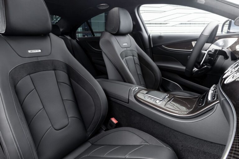 Wnętrze AMG wyróżniało się wykończeniami z włókna węglowego na desce rozdzielczej, centralnym panelu, konsoli środkowej i panelach drzwiowych. Sportowe fotele kubełkowe z wysokim osadzeniem były standardowym wyposażeniem. Kolejną istotną poprawą była deska rozdzielcza, która miała parę 12.3-calowych ekranów pod tym samym obszarem szklanym dla nowego systemu infotainment i panelu wskaźników. Touchpad zastąpił wcześniej używany kontroler do interfejsu MBAUX i wprowadził funkcje wspomagane przez sztuczną inteligencję, które pomagały kierowcy.