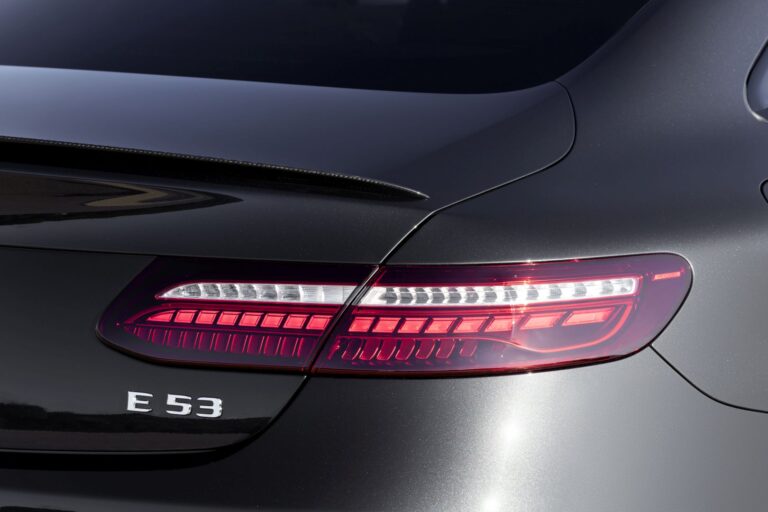 Mercedes-AMG systematycznie wzmacnia swoją tożsamość: nowy model E53 4MATIC+ Coupé oraz Cabriolet otrzymały charakterystyczny AMG-owski grill w kształcie litery A z pionowymi żaluzjami. Jego projekt i płaskie, w pełni LED-owe reflektory nadają pojazdowi potężne wrażenie szerokości. Przebudowany przedni zderzak w formie skrzydła A również korzystnie wpływa na ogólne proporcje pojazdu. Dokładnie ulepszony wnętrze pokazuje jeszcze większe powiązania z rodziną AMG. Duże wyświetlacze, nowa kierownica AMG Performance oraz system multimedialny MBUX z funkcjami i wyświetlaczami specyficznymi dla AMG tworzą charakterystyczną atmosferę Performance Luxury.