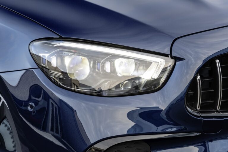 Przeprojektowana przednia część z atrapa chłodnicy specyficzną dla AMG i płaskimi reflektorami LED