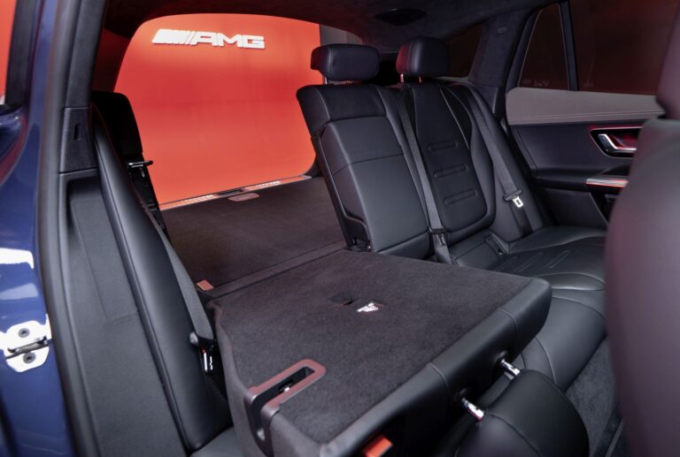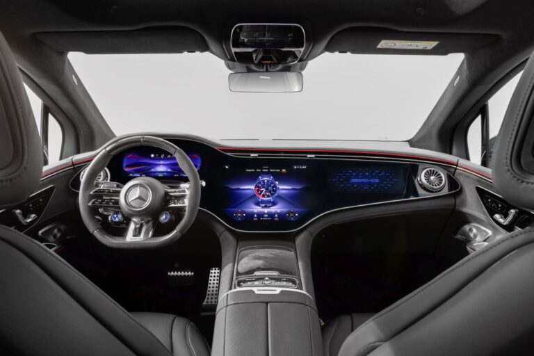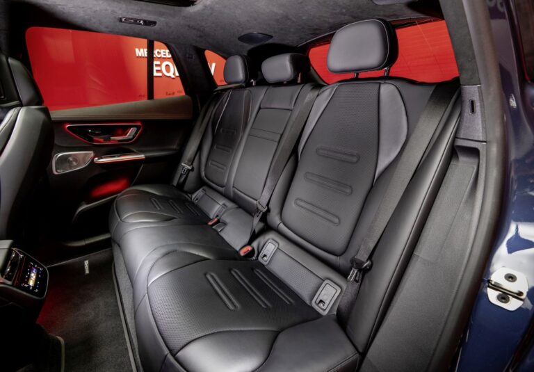 Przednia część SUV-a nawiązuje do znanego grilla Panamericana z pionowymi szczelinami, wyraźnie pokazując, że ten nowy elektryczny model od niemieckiego producenta chce udowodnić swoją wartość. Dodatkowo, dolny zderzak z wbudowanym grillem w kształcie litery A i bocznymi wlotami powietrza stanowił charakterystyczny design marki AMG. Jego profil ukazuje elegancką sylwetkę z opadającą tylną szybą. Na koniec, z tyłu, wąskie LED-owe światła tylne z czerwoną listwą przechodzącą przez klapę bagażnika nadają mu elegancki wygląd. Co więcej, producent nawet nie próbował naśladować rur wydechowych w tylnym zderzaku.