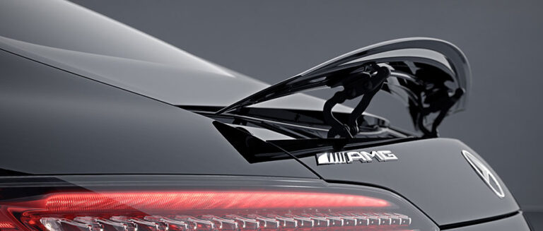 Nowe tylne błotniki sprawiają, że AMG GT C jest o 2,25 cala szersze od AMG GT i AMG GT S, co daje identyczne wymiary tyłu jak w AMG GT R. Muskularny design tworzy przestrzeń na większe koła oraz szerszy rozstaw kół. Obie te zmiany zwiększają przyczepność i pozwalają na szybsze pokonywanie zakrętów. Także szerszy tylny zderzak AMG GT C poprawia przepływ powietrza z tyłu. Wspólnie z AMG GT i AMG GT S, tylny spojler jest zintegrowany z klapą bagażnika i wysuwa się lub chowa elektrycznie przy określonych prędkościach, w zależności od wybranego programu jazdy.