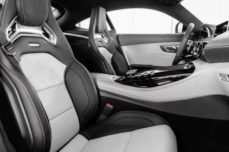 W AMG GT C kierownica ma standardowo pierścień z czarnej skóry nappa/mikrofibry DINAMICA. W AMG GT R pierścień jest całkowicie pokryty mikrofibrą DINAMICA. Kierownica AMG dostępna jest również w czarnej skórze nappa z wykończeniem w czarnym połysku piano, a także z mikrofibrą DINAMICA z elementami z włókna węglowego o wysokim połysku. Galwanizowane łopatki zmiany biegów na kierownicy umożliwiają jeszcze sportowszy styl jazdy z manualną zmianą biegów.
