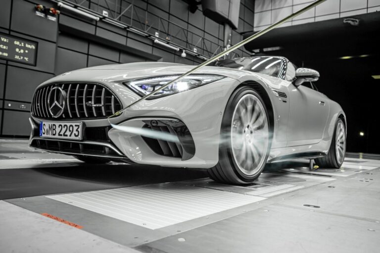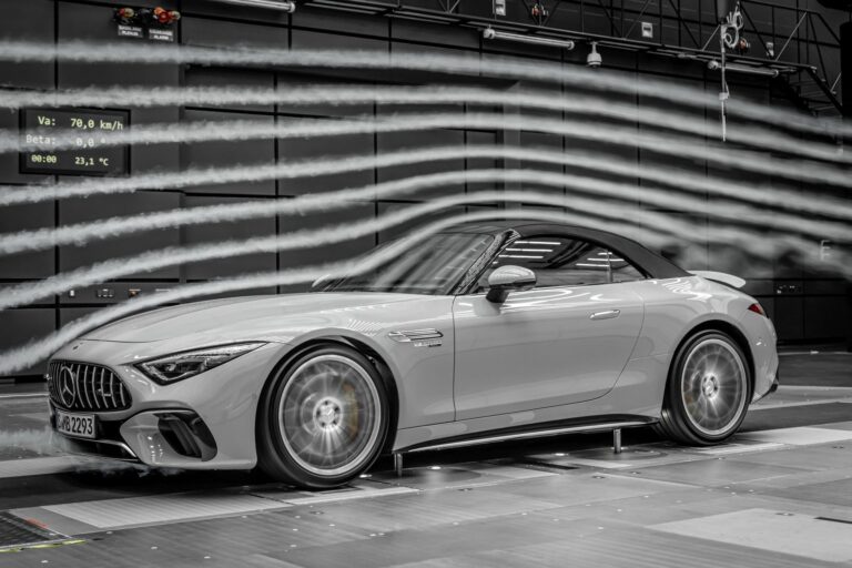 Kluczowym celem rozwoju nowego SL była wysoka efektywność aerodynamiczna – konkretnie doskonała równowaga między niskim oporem a ograniczonym unoszeniem. Luksusowy roadster korzysta tu z szerokiej wiedzy sportowej Mercedes-AMG oraz z rozbudowanych aktywnych elementów aerodynamicznych z przodu i z tyłu. Wszystkie elementy redukujące opór są płynnie wkomponowane w zewnętrzny design. Dodatkowe środki zmniejszają współczynnik oporu do Cd 0,31 – doskonała wartość dla samochodów sportowych z otwartym dachem.