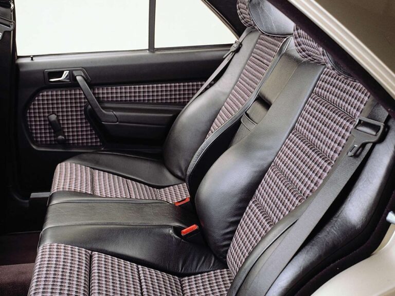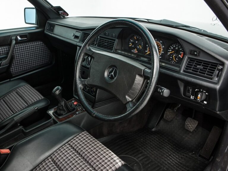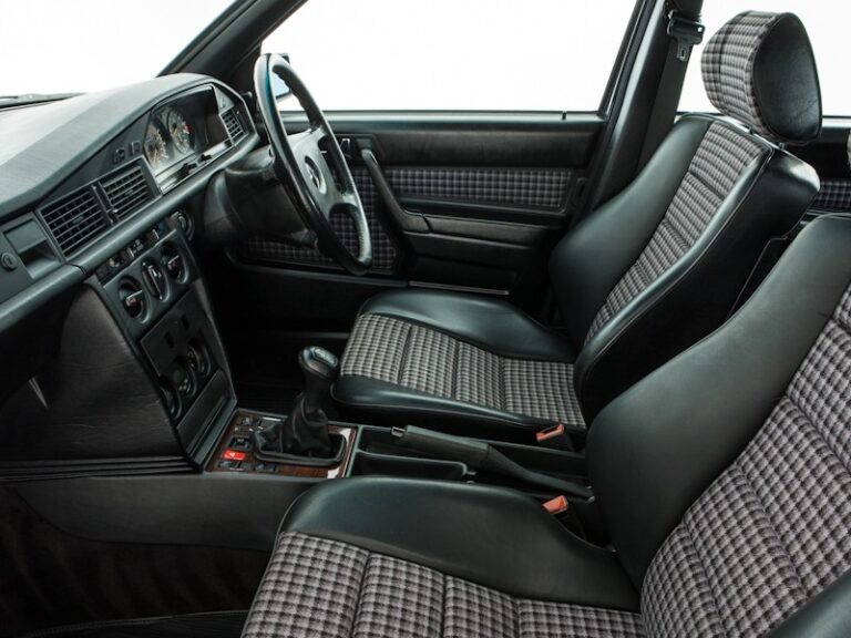 Wewnątrz, model 190 E 2.3-16 otrzymał luksusowe wnętrze. Z przodu zamontowano sportowe fotele z wysokim wsparciem i standardowym skórzanym wykończeniem, natomiast z tyłu znajdowała się kanapa przystosowana dla dwóch pasażerów. Nie było miejsca na trzecią osobę. Pojazdy sprzedawane w USA miały tylko trzy opcje: podgrzewane fotele, szyberdach i zagłówki z tyłu. Przed kierowcą umieszczono ten sam zestaw instrumentów co w pozostałych modelach serii 190 E, ale dodano dwa wskaźniki oraz stoper na dolnej części centralnej konsoli.