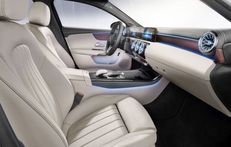 Wnętrze nowej Klasy A zostało całkowicie zdefiniowane dzięki nowoczesnemu, awangardowemu wyglądowi. Mercedes-Benz wprowadził zupełnie nowe podejście, rewolucjonizując klasę kompaktową od wewnątrz, oferując nowe poczucie przestronności. Unikalna architektura wnętrza została kształtowana przede wszystkim przez awangardowy design deski rozdzielczej: projektanci całkowicie zrezygnowali z osłony nad kokpitem. W rezultacie główna część deski rozdzielczej w kształcie skrzydła rozciąga się od jednych drzwi do drugich bez wizualnych przerw. Wspornik Widescreen (opcjonalnie) jest całkowicie samodzielny. Wloty powietrza w sportowym stylu turbiny to kolejny wyróżniający element.