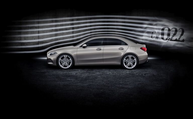 Nowy Klasy A Sedan korzysta z korzystnych warunków, jakie zapewnia jego długi tył, aby przekroczyć nawet już wzorowy Klasy A z nadwoziem hatchback (współczynnik Cd od 0,25). Z wartością benchmarkową Cd = 0,22 nowy model sedan dorównuje pierwotnemu rekordowi świata CLA Coupé. Dzięki powierzchni czołowej 2,19 m², która jest mniejsza niż w CLA, nowy Klasy A Sedan ma najniższy opór aerodynamiczny ze wszystkich produkowanych pojazdów na całym świecie.