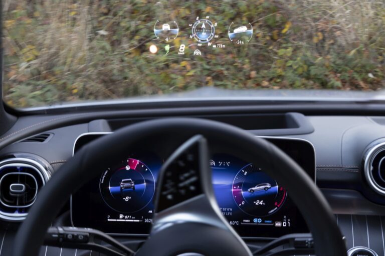 W porównaniu do wcześniejszej serii modeli Klasy C, najnowsza generacja Pakietu Wsparcia Kierowcy oferuje dodatkowe i zaawansowane funkcje. Zmniejszają one obciążenie kierowcy w codziennych sytuacjach, co przekłada się na wygodniejszą i bezpieczniejszą jazdę. W przypadku niebezpieczeństwa systemy mogą pomóc w odpowiedniej reakcji na zbliżającą się kolizję. Nowa koncepcja wyświetlania w wyświetlaczu kierowcy pokazuje, jak działają systemy.