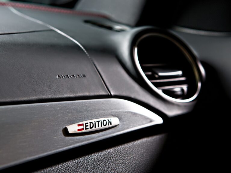 Opcjonalne wykończenia ze skóry designo nadają wnętrzu szczególnie ekskluzywny charakter: dostępne są cztery jednolite kolory i trzy dwukolorowe kombinacje, które można uzupełnić „rozszerzonymi wykończeniami ze skóry designo w czerni” w górnej części panelu instrumentów.