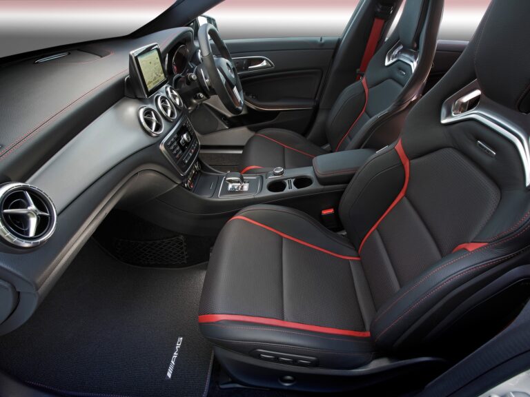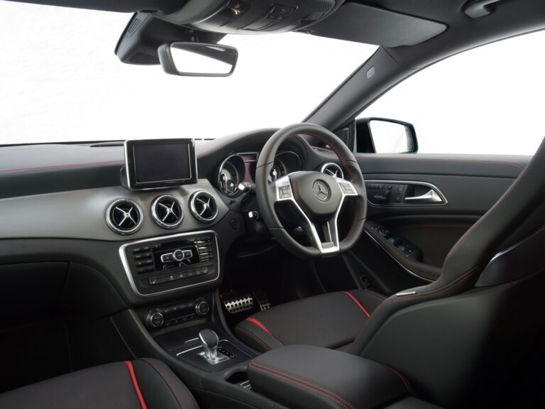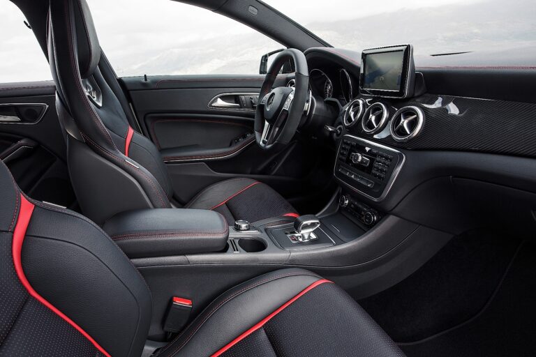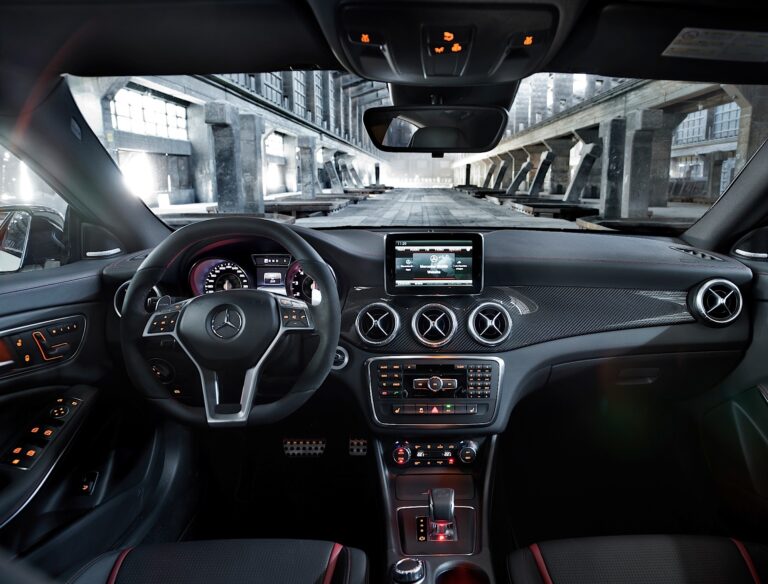 Imponująca jakość, wysokiej jakości materiały i cała dynamika oraz ekskluzywność, z jaką kojarzy się Mercedes-AMG – wnętrze CLA45 AMG nie zostawia nic do życzenia. Sportowe siedzenia z materiału ARTICO/ mikrofibry DINAMICA z czerwonym kontrastowym przeszyciem, czerwone pasy bezpieczeństwa, wielofunkcyjna kierownica z łopatkami zmiany biegów, jednostka sterująca AMG i panele progowe AMG są standardem. Doskonale współgrają ze sobą szczotkowane aluminiowe wykończenie deski rozdzielczej oraz pięć galwanizowanych wlotów wentylacyjnych. Informacji dostarcza zegar AMG z centralnym wyświetlaczem kolorowym, głównym menu AMG i RACETIMER.