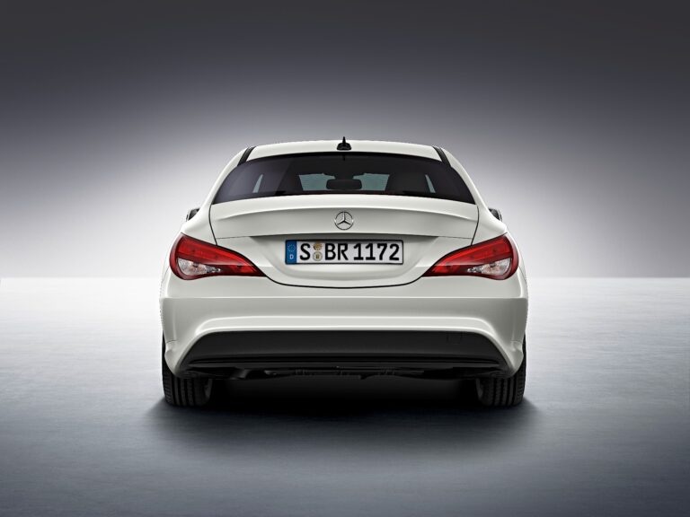 Tylna część, podkreślająca szerokość, emanuje mocą i atletyzmem, dzięki grze między powierzchniami wypukłymi i wklęsłymi a krawędziami. Delikatnie opadająca kontura dachu i wyraźny, charakterystyczny kształt tylnej szyby nadają CLA również charakter coupé z tyłu. Sportowe wrażenie z tyłu wynika z wciągniętych słupków C w połączeniu z mięśniem barkowym nad nadkolami tylnymi. Tylnie światła są otoczone przez muskularne linie ramion, które przechodzą w tył, a pozioma orientacja świateł podkreśla mocną i estetyczną szerokość tyłu. Funkcje świetlne są ułożone w stylu strzały.