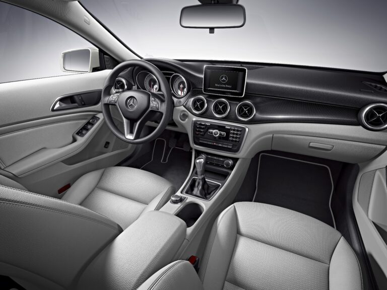 Już w standardowym wyposażeniu nowego modelu Mercedes-Benz CLA-Class znajduje się klimatyzacja, 3-ramienne wielofunkcyjne koło kierownicy z 12 przyciskami funkcyjnymi, regulowana w pionie i wzdłuż kolumna kierownicza, szkło o zielonkawym odcieniu z izolacją cieplną, radio Audio 20 CD z podwójnym tunerem, wyświetlaczem kolorowym oraz napędem CD obsługującym formaty MP3-WMA-AAC, sześć głośników oraz gniazdo Aux-in i interfejs USB w centralnej podłokietniku dla zewnętrznych urządzeń audio i wideo. Wyświetlacz kolorowy między dwoma dużymi wskaźnikami w zestawie przyrządów również wchodzi w skład standardowego wyposażenia CLA.