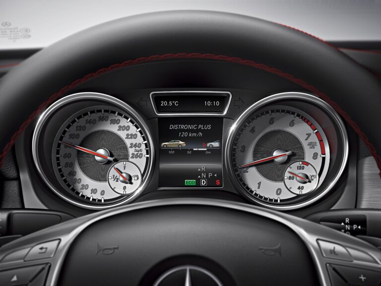 DISTRONIC PLUS: radarowy adaptacyjny tempomat wspiera kierowcę przy prędkościach od 0 do 200 km/h, utrzymując odstęp od samochodów z przodu. W ten sposób jest w stanie zainicjować hamowanie, aby całkowicie zatrzymać pojazd i znowu przyspieszyć. W rezultacie system jest również szczególnie wygodny w ruchu w trybie stop-and-go. Jeśli system wykryje, że odległość jest zmniejszana zbyt szybko, ostrzega kierowcę zarówno wizualnie, jak i dźwiękowo.